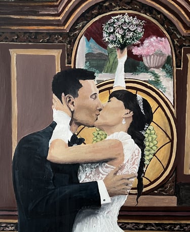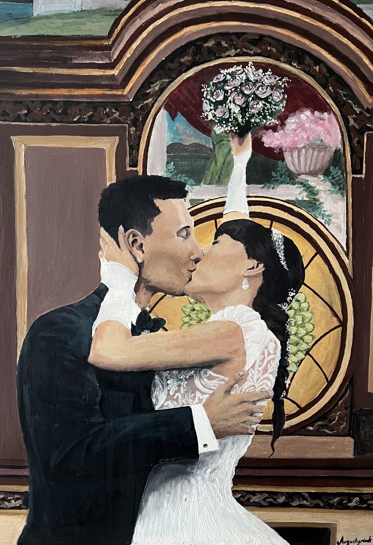 Zyskaj wyjątkowy, ręcznie malowany obraz, który uchwyci magię waszego ślubu w niepowtarzalny sposób.