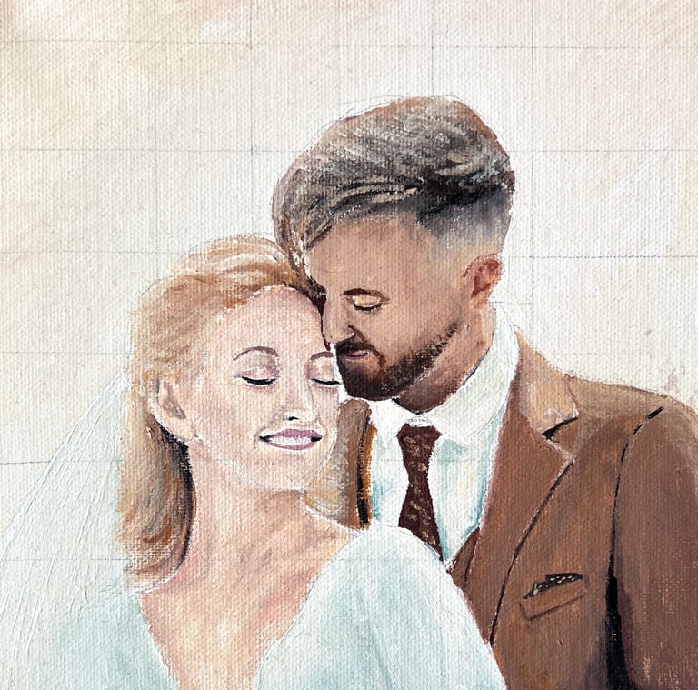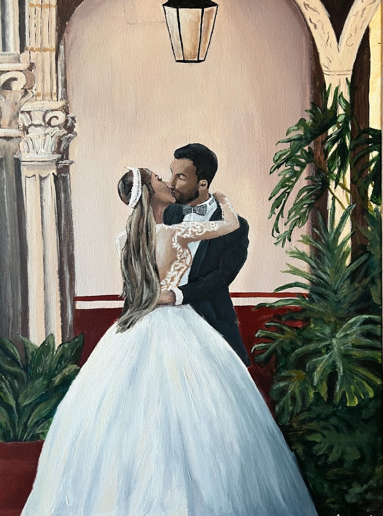 Poniżej szczegółowo opisałem proces malowania ślubnego obrazu na żywo.